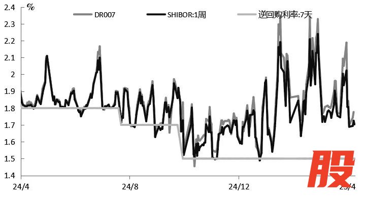 3月下旬以来,央行加大公开市场操作力度,阶段性转向净投放。3月25日,央行开展4500亿元MLF操作,对冲当月到期的3870亿元后,实现MLF净投放630亿元,这是2024年7月以来首次净投放。同时,央行从3月起将MLF操作由单一价位中标调整为多重价位中标,有利于降低银行负债成本,缓解净息差压力。此外,为保持银行体系流动性充裕,2025年3月央行开展了8000亿元买断式逆回购操作。资金面紧张情况缓和,推动短端利率下行。