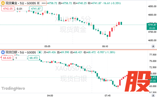 截至发稿,现货金银大幅回升,现货黄金跌幅收窄至1%以内,现货白银跌幅收窄至2%,甚至一度转涨。
